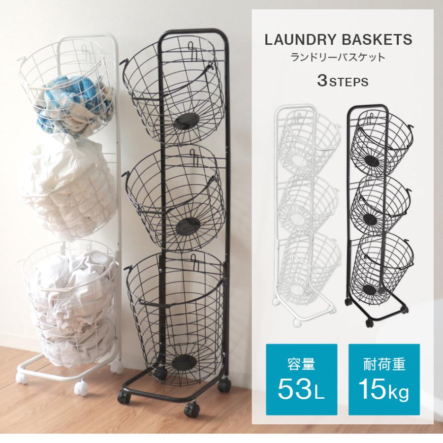 ランドリーバスケット おしゃれ 3段 超特価sale開催 ランドリーワゴン キャスター付き ランドリー収納 スリム 洗濯カゴ ブラック 北欧 洗濯物入れ シンプル ホワイト
